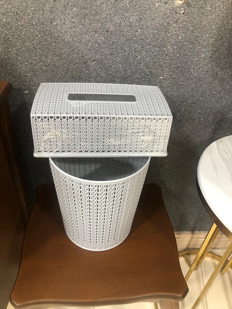 سطل و جا دستمال گلد پلاست متریال پلاستیک مدل حصیری