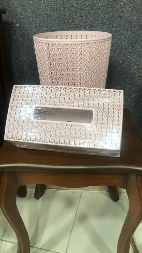 سطل و جا دستمال گلد پلاست متریال پلاستیک مدل حصیری رنگ کرپ