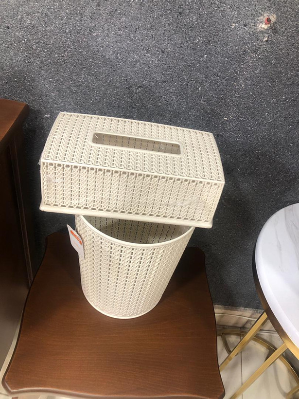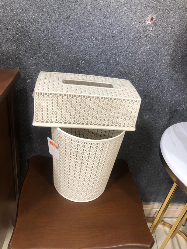 سطل و جا دستمال گلد پلاست متریال پلاستیک مدل حصیری رنگ کرم