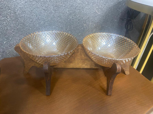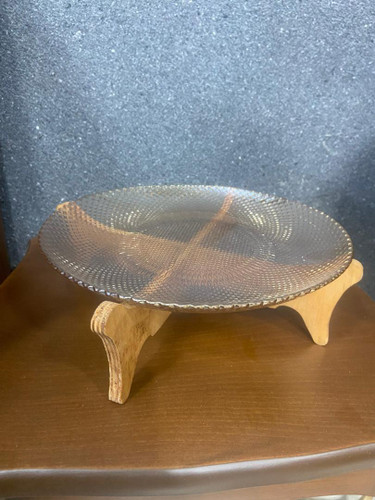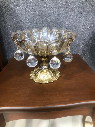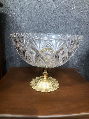 ظرف بلور برجسته پایه برنز ارتفاع 20 سانت و قطر ظرف 23 سانت