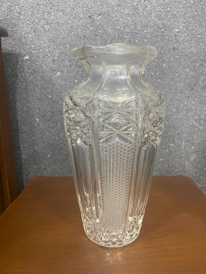 گلدان بلوری قدیمی طرح برجسته ارتفاع 25 سانت